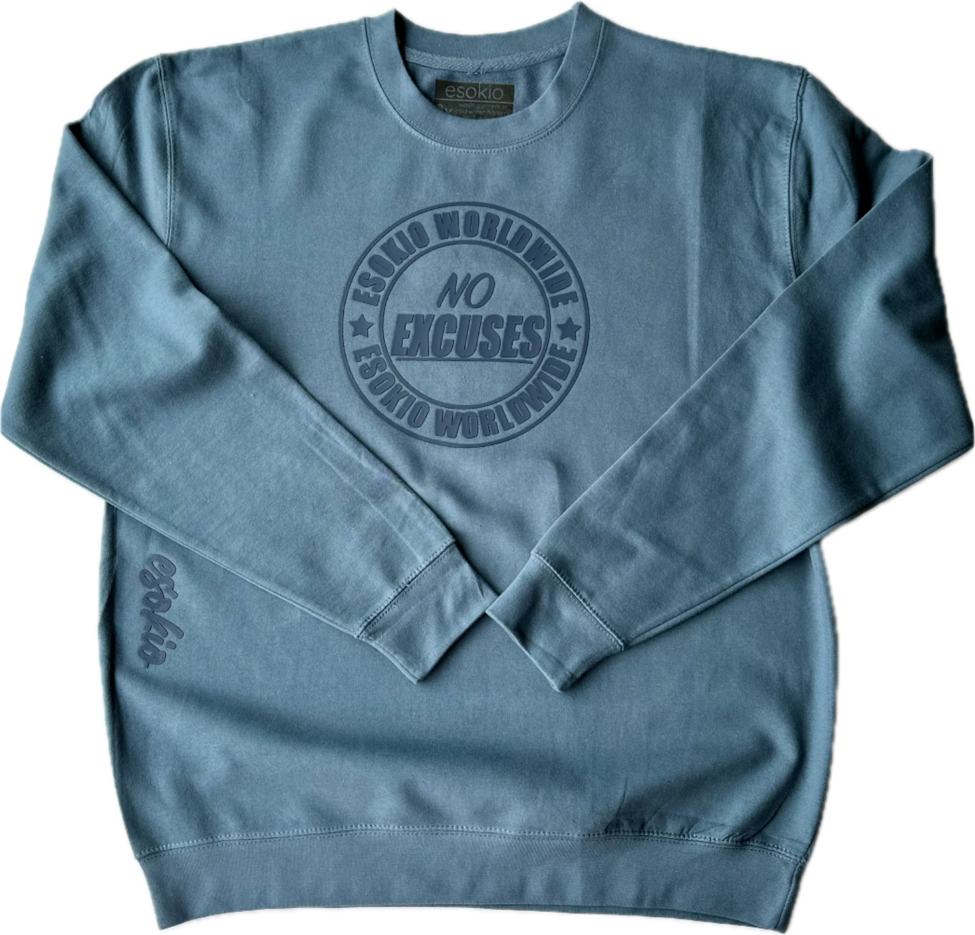 EsoKio NO EXCUSES Air Force BLUE Crew Sweatshirt with Navy design Premium cotton blend.